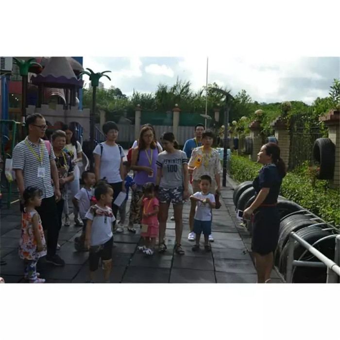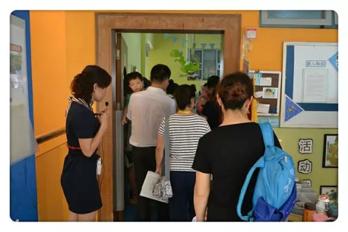 家長、幼兒分為三組,分別佩戴黃色、粉色、藍(lán)色參觀證,分別由楊助理、楊主任、彭主任帶領(lǐng)參觀幼兒園環(huán)境以及進(jìn)班級觀察幼兒學(xué)習(xí)生活情況。