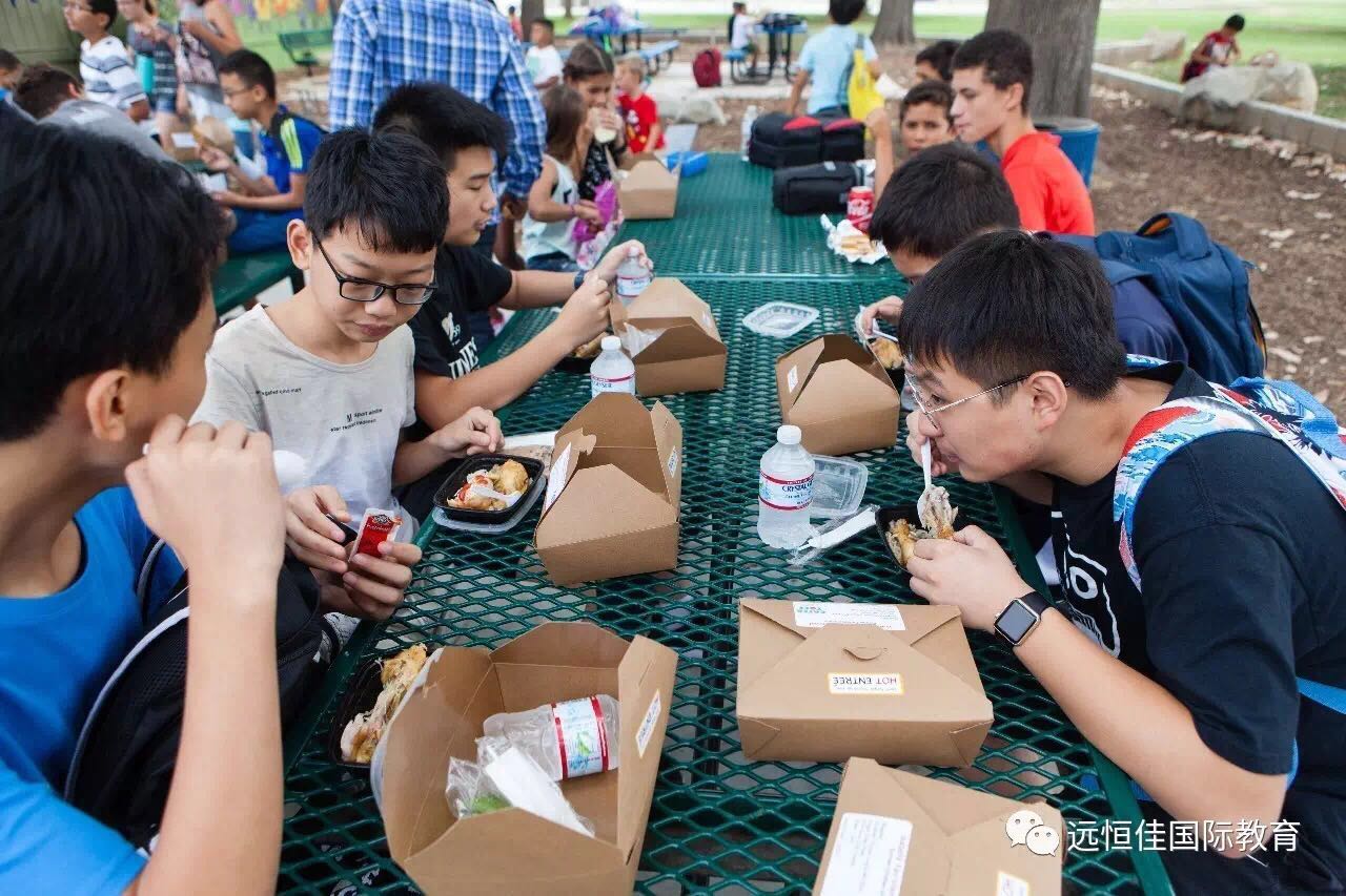 中午在露天的環(huán)境下享受美國(guó)特有的西式便當(dāng)午餐,對(duì)于同學(xué)們來(lái)說(shuō)也是特別新鮮。