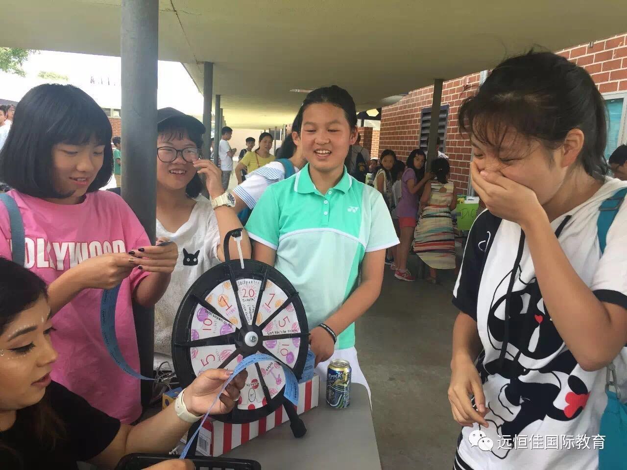 周五下午,學(xué)校舉行盛大的嘉年華派對(duì),校園的各個(gè)角落放滿了各種小游戲桌和禮品,同學(xué)們拿著手里的ticket在校園里面暢游,玩得不亦樂(lè)乎。
