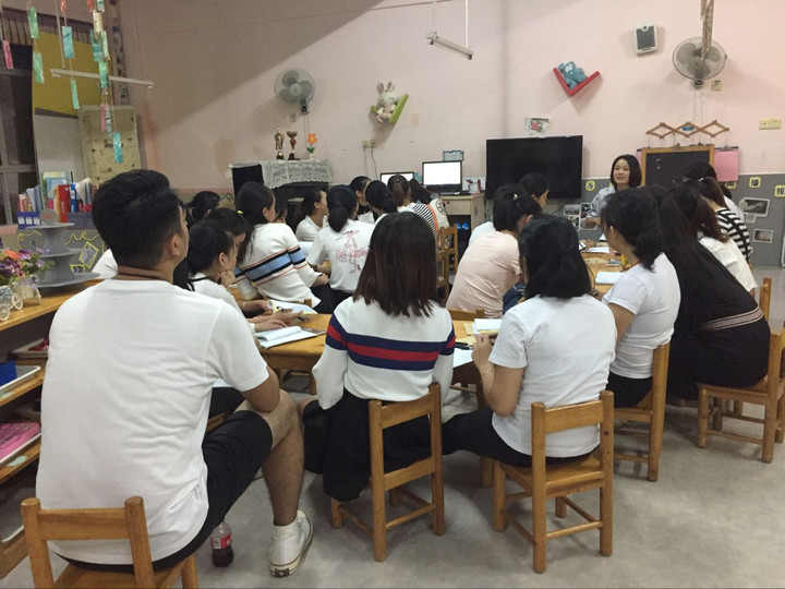 對于早期閱讀我園師資處于非常薄弱的狀況,因而時常給學習和研究帶來許多困惑,反映了教師專業(yè)化水平的缺乏,特別是思想觀念轉(zhuǎn)變與實踐、行動的脫節(jié),缺乏實踐的總結(jié)研 討,往往使教學停止不前或前進步子太慢。作為幼兒教師,要想更好地對幼兒進行“傳道、授業(yè)、解惑”,必須重視自己的語言,要有一種既符合語法規(guī)范,又符合幼兒年齡特征和接受水平的語言風格,是非常重要的。為此,教師應力求在幼兒注意集中的時間段內(nèi),用精簡的語言有效地解決問題。幼兒年齡小,理解能力較弱,這就決定了教師在使用語言時應當避繁求簡。為了解決教師在日常教學活動中的困惑以及提升教師在閱讀語言方面的能力,本學期在教學處的引領與組織下,在2017年10月17日、18日組織了骨干教師進行優(yōu)質(zhì)課展示,并在10月18日晚上組織全體教師針對優(yōu)質(zhì)課程以及平時教學活動中存在的問題進行研討與分享。
