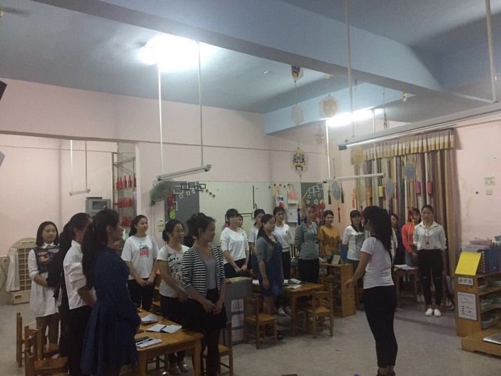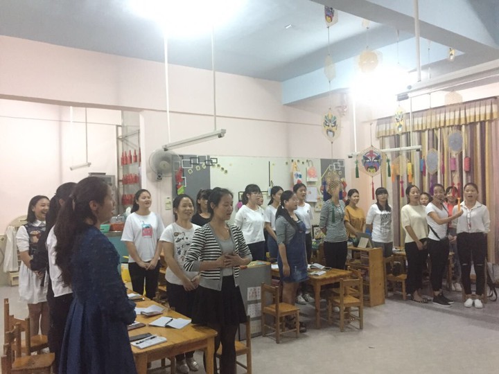 當(dāng)然教研中也還是會(huì)發(fā)現(xiàn)很多教師在進(jìn)行音樂(lè)教學(xué)時(shí),方法過(guò)于保守,缺乏創(chuàng)新能力,或者對(duì)于新穎的教學(xué)方法信心不足、理解不透歌曲想要表達(dá)的具體內(nèi)容。在歌唱教學(xué)中發(fā)現(xiàn)教師會(huì)陷入了一個(gè)固定的教學(xué)模式,教歌詞——學(xué)節(jié)奏——跟唱,而且每次在歌唱教學(xué)的時(shí)候老師是最累的,以老師的范唱為主;小朋友的學(xué)習(xí)方式也比較被動(dòng),唱到后面都不太感興趣了,而且怎樣去引導(dǎo)孩子聲音的控制。有的孩子唱歌的時(shí)候聲音特別大,臉都紅了,這很傷害他的嗓子,遇到這樣的問(wèn)題作為老師只有口頭的說(shuō),但還有沒(méi)有別的比較好的方法?在歌唱教學(xué)中幼兒需不需要一些歌唱的技能技巧?針對(duì)這一現(xiàn)象我們的教研活動(dòng)現(xiàn)場(chǎng)進(jìn)行了研討,相關(guān)內(nèi)容給出了解決的方法。再運(yùn)用鋼琴練習(xí)專(zhuān)業(yè)的發(fā)聲方法,實(shí)踐中去引導(dǎo)老師正確的練聲、氣息的運(yùn)用、發(fā)聲的正確位置、如何保護(hù)好嗓子、音準(zhǔn)等,練習(xí)中對(duì)老師們進(jìn)行專(zhuān)業(yè)的輔導(dǎo),集體練聲時(shí)檢查老師們的發(fā)聲技巧,解決老師們聲樂(lè)中存在的困惑,讓老師理解后再去引導(dǎo)幼兒發(fā)出好聽(tīng)的聲音,保護(hù)好嗓子。讓大家學(xué)會(huì)貼近幼兒認(rèn)知去教授、如何處理在歌唱教學(xué)中的重難點(diǎn)、正確的發(fā)聲方法、基本的音準(zhǔn)練習(xí),認(rèn)真的上好每一堂音樂(lè)課。教研出更好的方式方法讓幼兒更加喜愛(ài)我們的音樂(lè),體會(huì)音樂(lè)所帶給我們的共同快樂(lè)。