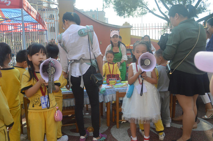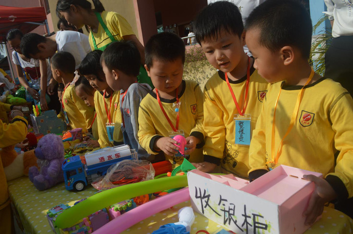 好熱鬧的場面啊!中小班的小朋友也積極參與到了我們的活動中,在這次活動中,大班小朋友賣的是玩具、換的是成長。這場讓小朋友做起“小老板”的活動,培養(yǎng)了孩子的語言表答能力、組織能力、應變以及理財能力,提高了孩子參加社會實踐活動的能力。他們在交易中學會了理財、學會了溝通、學會誠信,體會創(chuàng)造價值的樂趣。同時也加強了和爸爸媽媽之間的情感交流,真正達到了親子互動!
