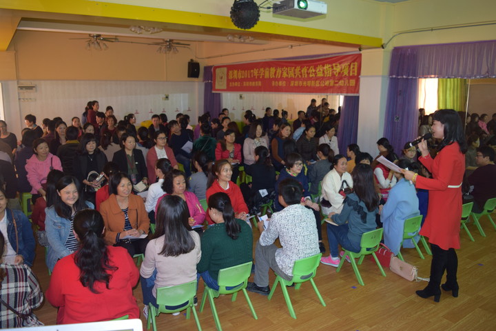 父母與孩子間的親子關(guān)系是否良好,親子溝通技巧發(fā)揮了關(guān)鍵作用。良好的親子溝通能讓家庭氣氛更和諧,教養(yǎng)子女也變得更輕松。然而,還是有很多父母大嘆和孩子難以溝通,或是已經(jīng)盡力去和孩子“溝通”,但親子關(guān)系還是不太融洽。那么,家長怎樣與自己的孩子進(jìn)行溝通呢?依托深圳市2017年學(xué)前教育家園共育公益指導(dǎo)項目,公明第二幼兒園在2017年12月18日下午邀請了遠(yuǎn)恒佳教育集團(tuán)龍華中英文學(xué)校德育主任祝啟鳳老師進(jìn)行了專題講座——親子溝通技巧。