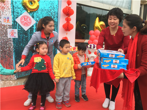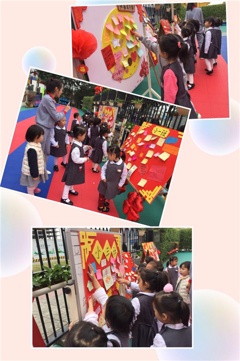 祝福小朋友新的一年好運(yùn)連連,家長(zhǎng)和幼兒在祝福板上寫下新年祝福。