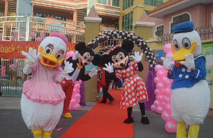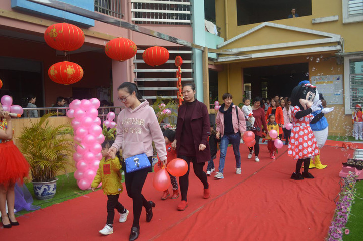 7:30開學(xué)典禮就正式開始啦!在老師們、卡通人物的迎接下,家長與寶寶們伴隨著歡快的音樂,快樂的歡呼起來;用互動的方式開啟了一系列的環(huán)節(jié):