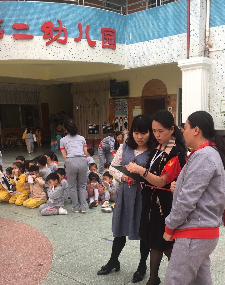 全體師生和幼兒安全撤離到操場(chǎng)后,各班老師迅速 開始清點(diǎn)幼兒逃生人數(shù),確保每一位幼兒都已經(jīng)安全撤離,并向總指揮上報(bào)本班的幼兒總?cè)藬?shù)以及今天逃生人數(shù)。