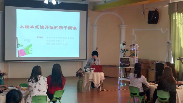 袁校長(zhǎng)以一本繪本《愛(ài)麗斯漫游奇境》《花婆婆》導(dǎo)入,讓家長(zhǎng)們知道:繪本就是播種,把美好的、五顏六色的花的種子播種在孩子們的心中,每一本書(shū)就是一顆種子,當(dāng)你閱讀一本書(shū),就是在孩子的心中播種一顆美好的種子。同時(shí)袁曉峰校長(zhǎng)也引入了新西蘭的一位圖書(shū)管理員的一段話(huà):繪本是孩子在人生道路上最初見(jiàn)到的書(shū),是人在漫長(zhǎng)的讀書(shū)生涯中所讀到的書(shū)中最最重要的書(shū),一個(gè)孩子從繪本中體驗(yàn)到多少快樂(lè),將決定他一生是否喜歡讀書(shū)。讓家長(zhǎng)們明白繪本在親子閱讀中的價(jià)值:繪本能幫助孩子愛(ài)上閱讀、學(xué)會(huì)閱讀、以及能讓孩子學(xué)會(huì)更多地知識(shí)。