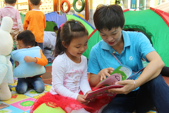 到了自主閱讀的時間啦!小朋友們坐在一起翻閱著圖書繪本,看的真入神啊!瞧!他們還時不時的一起交流討論呢。有的小朋友還和老師一起閱讀,聽媽媽們講故事,真是個令人快樂的時光!多希望時間定格在這里,有你有我有圖書,就這樣快樂又簡單的生活著。