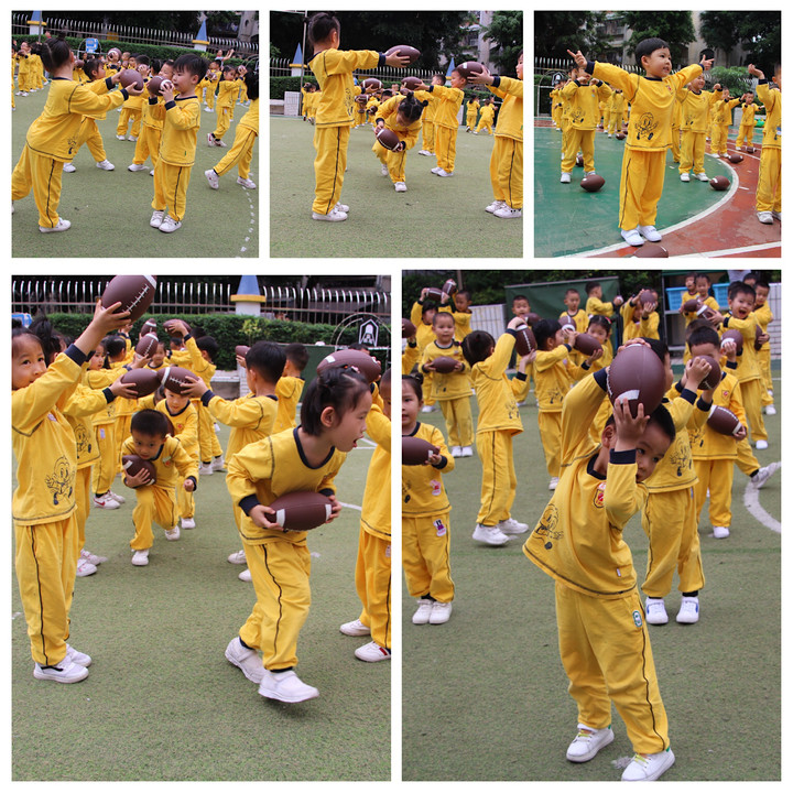 小班早操為器械操《小小聯(lián)盟隊》為原創(chuàng)早操,根據幼兒的年齡特點,我們選取了“橄欖球”進行早操練習。在操節(jié)的設計中,以“成長探索”為主題,注重大肌肉與小肌肉發(fā)展的有效結合,動與靜的搭配,同時在操節(jié)中,鍛煉幼兒的拋接球能力,同伴間的合作能力,使每個幼兒能在愉悅的氛圍中得到鍛煉。