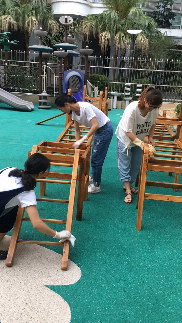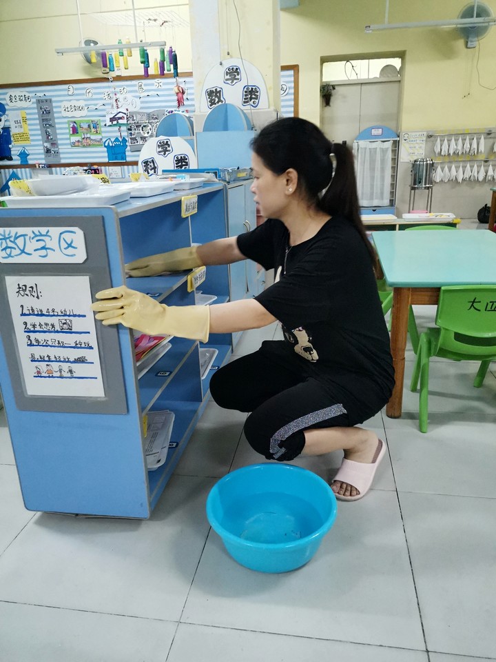 瞧,各教職工掃的掃、抹的抹、擦的擦、洗的洗、沖的沖,干勁非常足,大家對(duì)幼兒園各個(gè)角落進(jìn)行衛(wèi)生大清除,做到不留死角、不留盲區(qū)。