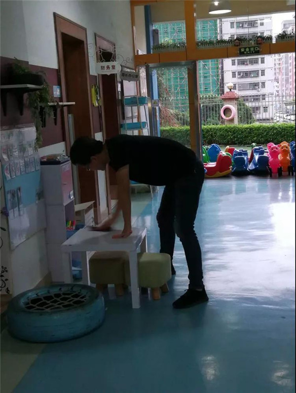 看,兩位爸爸參與消毒工作多認(rèn)真仔細(xì)。