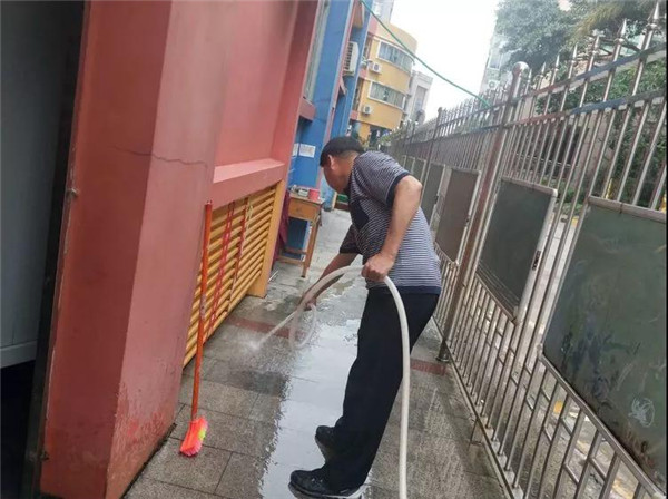 為了給幼兒提供一個(gè)安全、衛(wèi)生、舒適、整潔的校園環(huán)境,切實(shí)做好幼兒園衛(wèi)生保健工作,提高師生及家長(zhǎng)對(duì)疾病防控的意識(shí),我園開(kāi)展了家長(zhǎng)參與幼兒園衛(wèi)生消毒工作。在何園長(zhǎng)、杜醫(yī)生的帶領(lǐng)下,老師們組織家長(zhǎng),對(duì)全園室內(nèi)外衛(wèi)生進(jìn)行了全面徹底的清洗消毒。