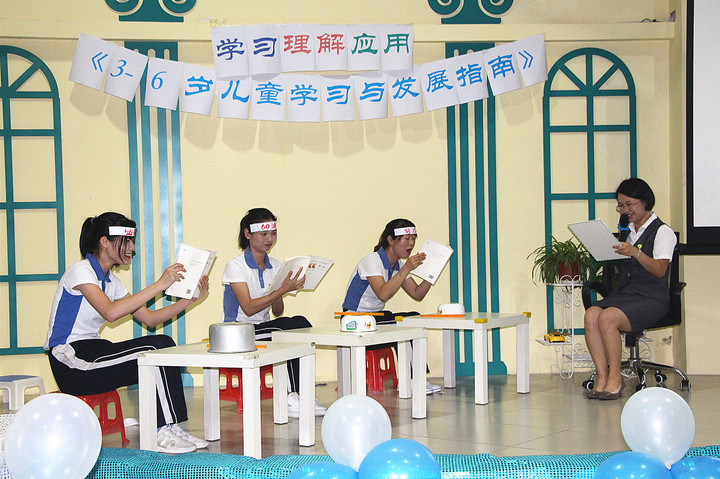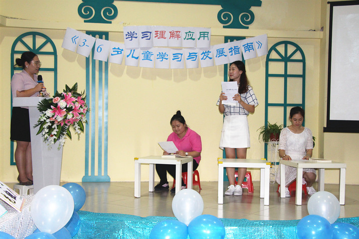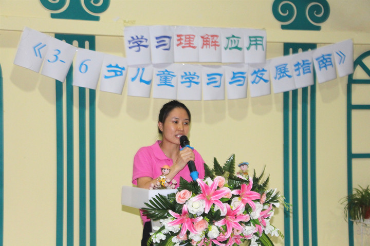 中班級(jí)組老師精彩的演講以及有趣的課堂情景劇表演為我們活靈活現(xiàn)的展示了《指南》研制的背景和作用。