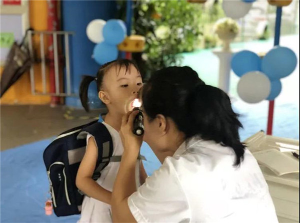 我們的醫(yī)生姐姐一早就在門口等候孩子們的到來,給孩子們進行晨檢!