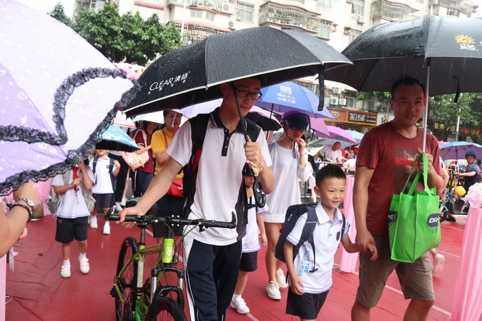9月2日的清晨,雖然天空下著小雨,卻擋不住行政干部、值日師生迎接同學們到校的熱情。接送的家長、上學的同學們臉上個個洋溢著燦爛的笑容,新學期校園生活也就由此拉開帷幕。
