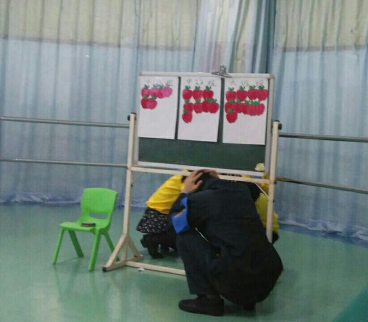 寶貝們,遇到地震一定要聽從老師的指揮,不慌不忙,找到救命三角抱頭蹲下!