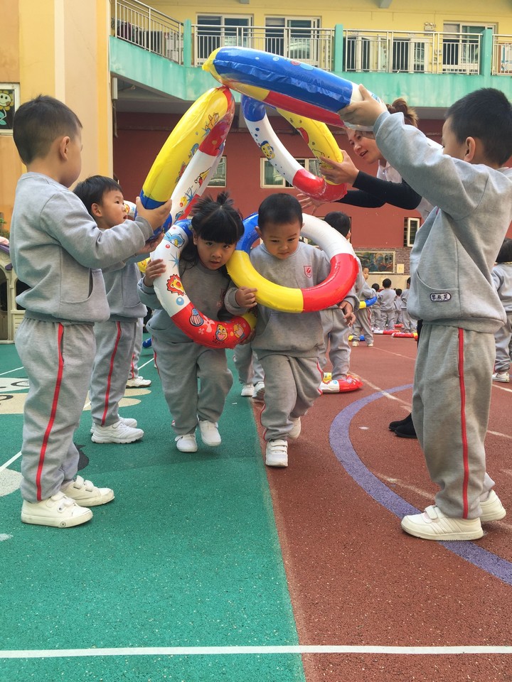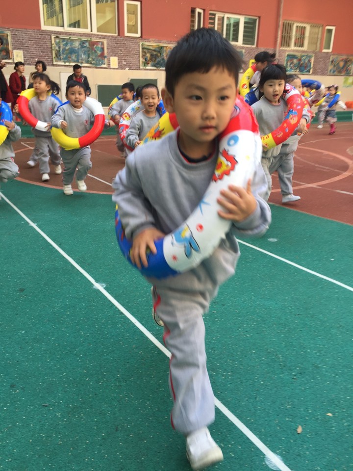 首先上場的是小班組的小朋友,他們展示的是泳圈操,他們手持游泳圈,個個神氣十足,用稚拙的小手、小腳,在音樂聲中快樂的擺著、跳著,游著,游出了歡樂,游出了可愛,游出了他們對早操這一運動的喜愛,對健康快樂的追求!