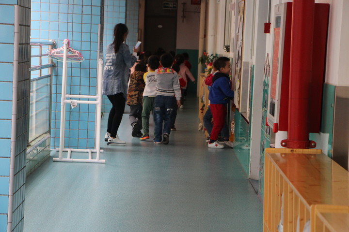 全體幼兒安全抵達(dá)安全地帶,教師正在清點(diǎn)班級(jí)人數(shù)