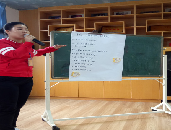 觀看了幼兒的早操后,我們進(jìn)行分組研討,首先討論了一日生活有哪些類(lèi)型、我們討論得出有“生活活動(dòng)、體育活動(dòng)、自主游戲活動(dòng)、學(xué)習(xí)活動(dòng)”。接下來(lái)我們組研討的是則是“各幼兒園半日活動(dòng)安排”,研討后各組進(jìn)行代表發(fā)言,領(lǐng)導(dǎo)點(diǎn)評(píng)。