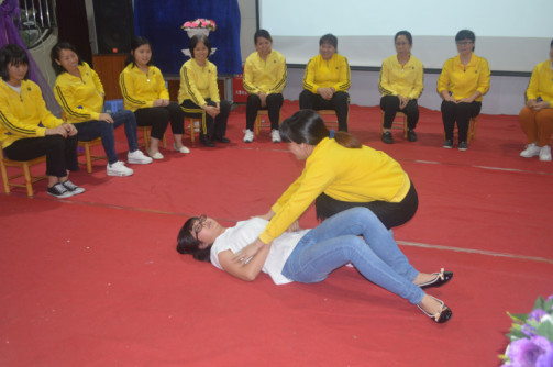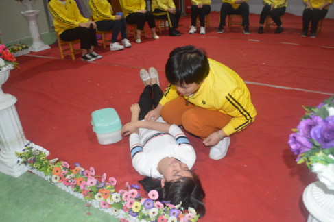 活動開始前以一段郎朗上口的《安全快板》拉開了本次活動的序幕!緊接著進(jìn)入本次活動的第一環(huán)節(jié),全體保育老師根據(jù)自己抽到的題目依次進(jìn)行實操展示。通過實操展示活動與搶答環(huán)節(jié)可以看出平時保育員在日常生活中積累的安全常識究竟有多少??矗豪蠋焸儌€個都是有備而來,實操展示都是有模有樣的,搶答環(huán)節(jié)更是激情四射,競爭非常激烈。