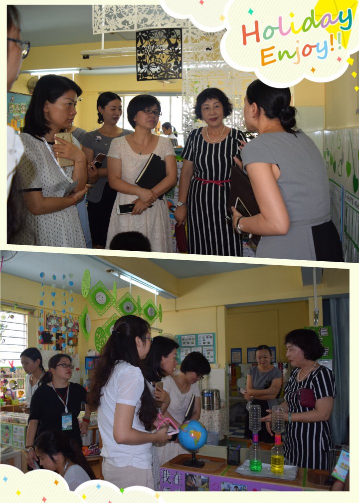 接著,工作室第一小組組長——公明二幼譚偉橙園長帶領(lǐng)工作室的園長、老師們參觀了班級的室內(nèi)學(xué)習(xí)環(huán)境,從班級的區(qū)域環(huán)境到主題環(huán)境、立體環(huán)境、晨談計劃墻、幼兒游戲材料等都做了介紹。充分展示二幼環(huán)境與教育活動相結(jié)合,環(huán)境滲透社會教育的知識,潛移默化地促進(jìn)幼兒社會性發(fā)展。
