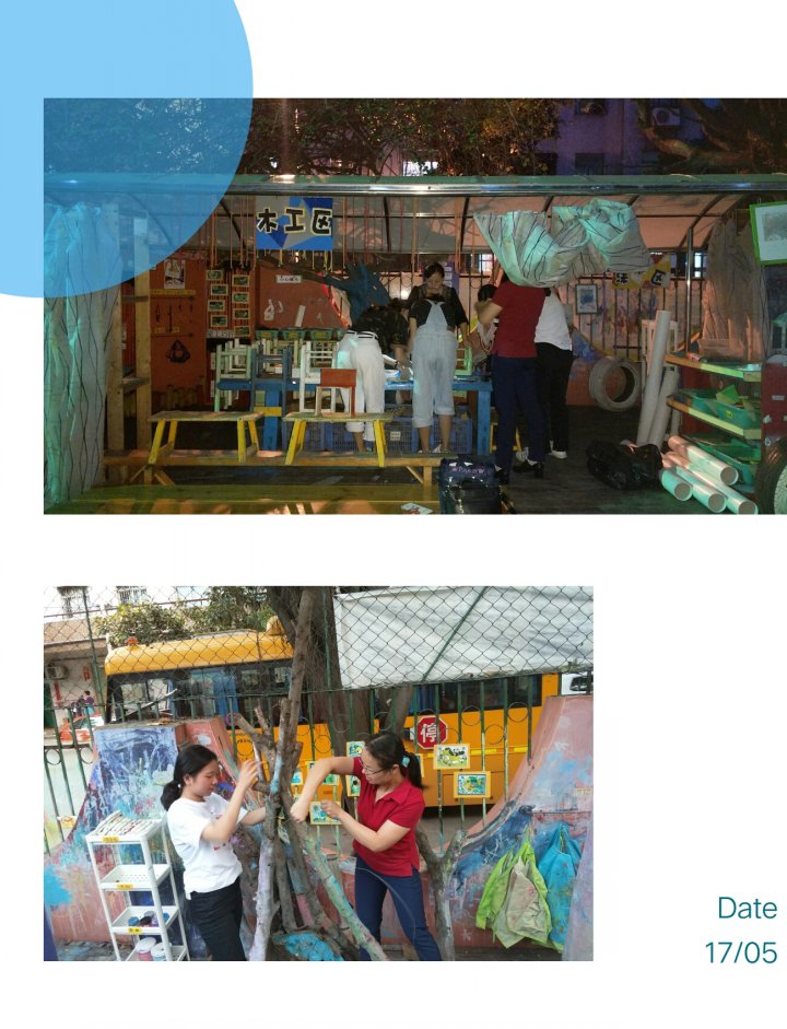 大班級(jí)組:承擔(dān)了木工區(qū)、玩水區(qū)、表演區(qū)的環(huán)境創(chuàng)設(shè)與材料的投放。木工區(qū)根據(jù)中大班幼兒的發(fā)展及年齡特點(diǎn),提供錘子、釘子、鉗子等工具讓幼兒進(jìn)行一些拆、裝、拼等活動(dòng),鍛煉幼兒的手部肌肉和精細(xì)動(dòng)作的發(fā)展,并提供一些木工膠水、螺絲釘、護(hù)目鏡、手套和與木工相關(guān)的書(shū)籍。