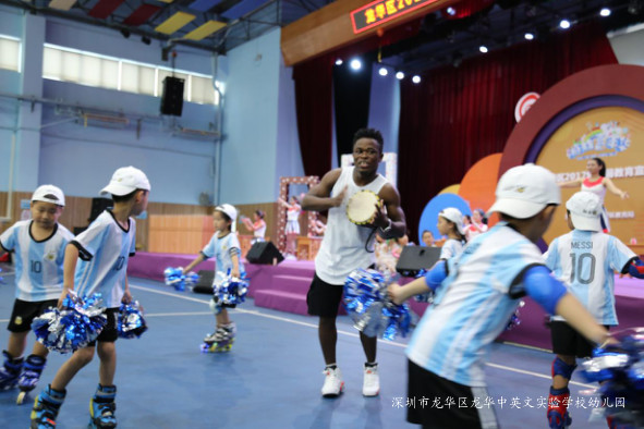 由深圳市龍華中英文實驗學(xué)校幼兒園的師生們?yōu)槲覀冄堇[了活力四射的開場舞《青春舞曲》。