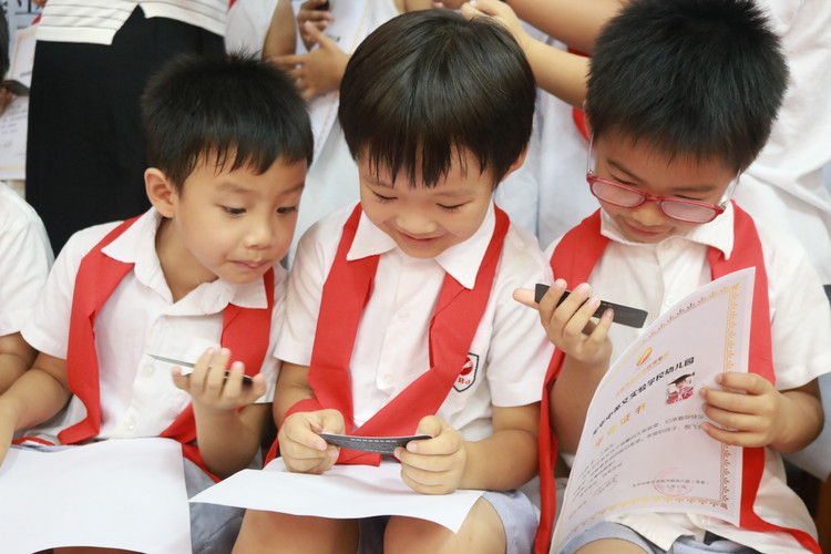 手持夢(mèng)想號(hào)動(dòng)車(chē)車(chē)票及幼兒園畢業(yè)證書(shū),孩子們開(kāi)心極了......