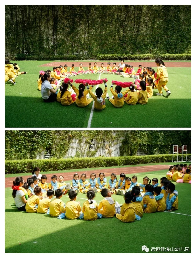 作為園里的大哥哥,大姐姐,他們一個(gè)個(gè)神采飛揚(yáng),自信滿滿,手持彩色花環(huán),就像雨后繽紛美麗的彩虹。