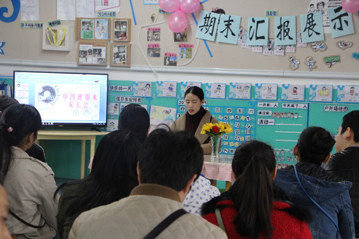 各班級(jí)老師正在和家長(zhǎng)們匯報(bào)本學(xué)期的班級(jí)各項(xiàng)工作