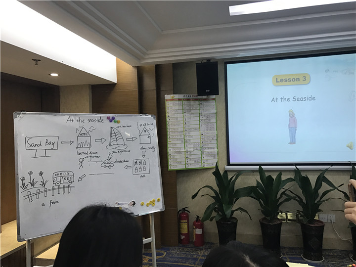 第二天上午的主題是自然拼音教學(xué),是由講師為我們講解自然拼讀教學(xué)的意義、目標(biāo)、核心原則與方法,同時(shí)還展示了課堂實(shí)操,讓我們更直觀地理解了自然拼讀法的意義和具體操作方式。在學(xué)習(xí)了上午的理論知識(shí)后,下午我們所有學(xué)員分組進(jìn)行故事教學(xué)設(shè)計(jì)與展示,我們被分到了第五組,我們與同組的老師們?cè)诤芏痰臅r(shí)間內(nèi)完成了At the Seaside教學(xué)設(shè)計(jì)和講故事的設(shè)計(jì),其中我們的亮點(diǎn)是簡(jiǎn)筆畫(huà)教學(xué)和分層教學(xué),給現(xiàn)場(chǎng)的老師們留下了深刻的印象。