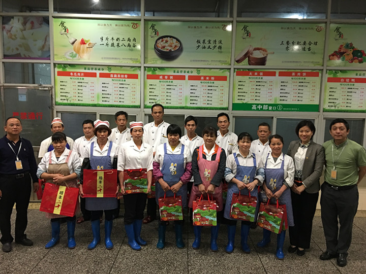 學(xué)校上級(jí)部門,深圳市遠(yuǎn)恒佳教育集團(tuán)還成立了后勤服務(wù)公司,聘用專門的管理及技術(shù)人才對(duì)全集團(tuán)(包括龍華中英文實(shí)驗(yàn)學(xué)校)進(jìn)行食堂強(qiáng)化管理、提高食堂服務(wù)質(zhì)量,每月還會(huì)對(duì)下屬校、園食堂進(jìn)行評(píng)比。我校在集團(tuán)進(jìn)行的專業(yè)、嚴(yán)格的評(píng)比中,多次被評(píng)為優(yōu)秀食堂。