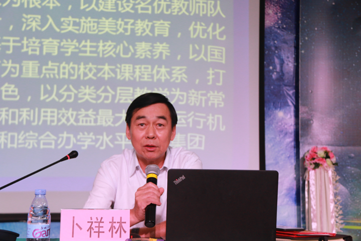 特級教師、學校卜祥林校長會上解讀了新學年重點工作,明確了新學年“辦優(yōu)質(zhì)、特色、品牌學?!钡墓ぷ髂繕耍岢隽恕耙粤⒌聵淙藶楦?,以建設(shè)名優(yōu)教師隊伍為保證,全面貫徹黨的教育方針,深入實施美好教育,優(yōu)化學校要素結(jié)構(gòu),完善基于培養(yǎng)學生核心素養(yǎng),以國際理解教育、藝體教育和創(chuàng)客教育為重點的校本課程體系,打造小班化、個性化為特色,以分類分層教學為新常態(tài)的精品課程,健全教育資源配置和利用效益最大化的運行機制和保障機制,全面提高教育質(zhì)量和綜合辦學水平,為集團20年團慶獻禮”的總體工作要求。