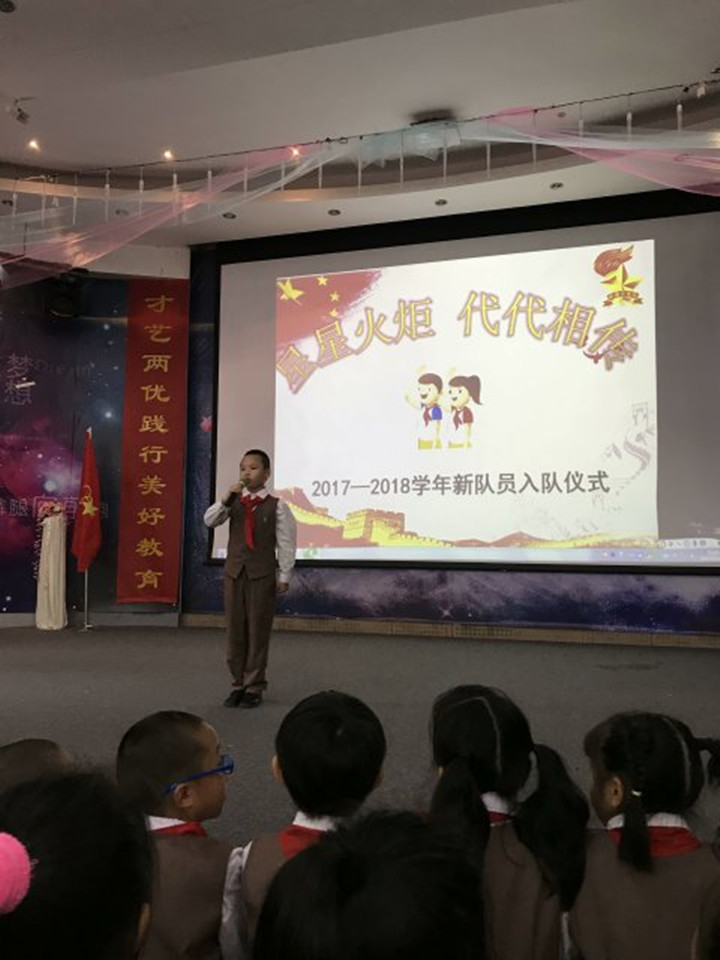 2017年12月15日下午,龍華中英文實(shí)驗(yàn)學(xué)校實(shí)驗(yàn)部一年級(jí)學(xué)生在多功能報(bào)告廳舉行了新隊(duì)員入隊(duì)儀式。為迎接這個(gè)神圣的日字子的到來(lái),一年級(jí)進(jìn)行了隊(duì)前教育,各中隊(duì)提前開(kāi)展了“隊(duì)知識(shí)回顧”等系列活動(dòng),學(xué)生們遞交了書(shū)面的入隊(duì)申請(qǐng)書(shū)。