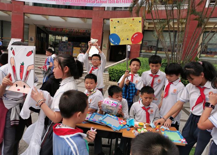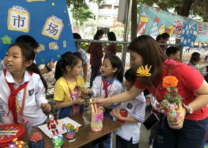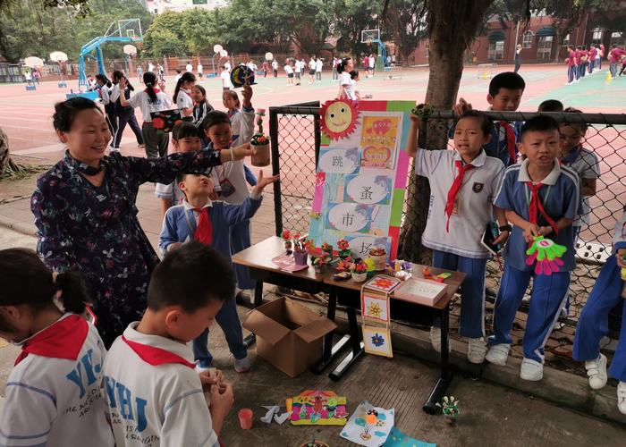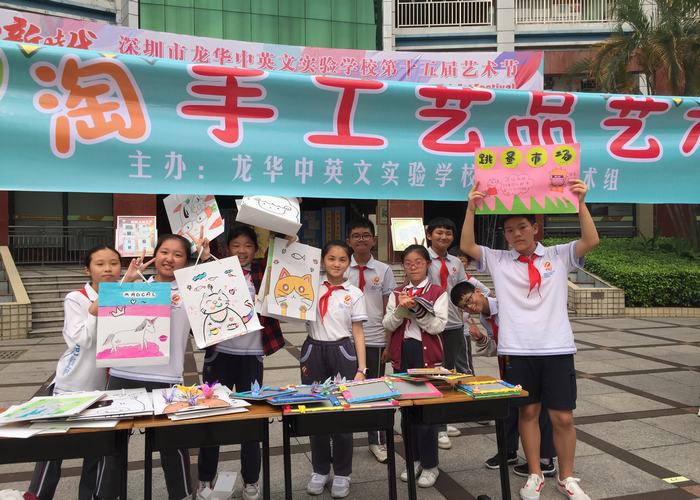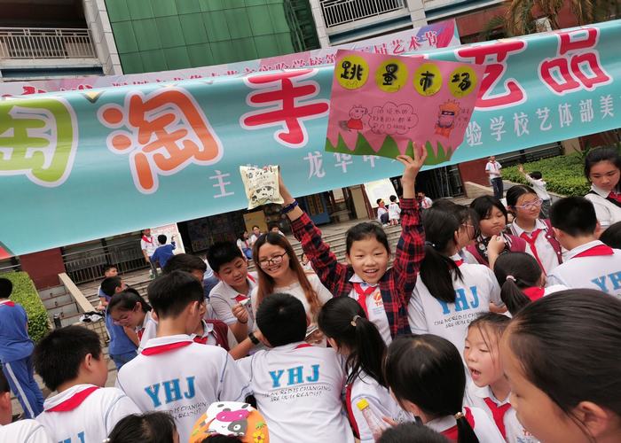 2019年5月10日下午第八節(jié)課時(shí)間,深圳市龍華中英文實(shí)驗(yàn)學(xué)校校園里一片繁忙、熱鬧景象。哦!這是小學(xué)部美術(shù)組舉辦的手工作品跳蚤市場開市了。