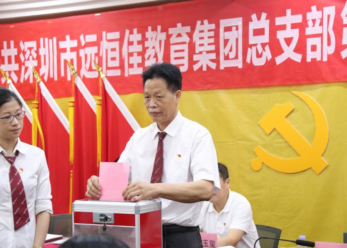 接著由現(xiàn)任集團(tuán)黨總支部書記宋遠(yuǎn)標(biāo)同志代表黨總部支委員會(huì)作了題為《強(qiáng)化黨的政治核心引領(lǐng),聚心聚力共謀優(yōu)質(zhì)發(fā)展》的報(bào)告。報(bào)告從“黨總支部的基本情況、六年來(lái)的主要工作回顧、取得的成績(jī)與不足、黨總支部對(duì)未來(lái)工作的建議”四大方面進(jìn)行了全面總結(jié)。聽取完工作報(bào)告后,與會(huì)黨員認(rèn)真審議并表決通過(guò)了宋遠(yuǎn)標(biāo)總支書記所作的報(bào)告。隨后按照會(huì)議議程分別舉手表決通過(guò)了《中共深圳市遠(yuǎn)恒佳教育集團(tuán)總支部選舉辦法》及監(jiān)票人、計(jì)票人建議名單。在充分醞釀新一屆遠(yuǎn)恒佳教育集團(tuán)黨總支部委員會(huì)候選人預(yù)備人選的基礎(chǔ)上,以無(wú)記名投票、差額選舉的辦法選舉產(chǎn)生了由宋遠(yuǎn)標(biāo)、戴桓標(biāo)、王開利、鄧木金、蔡文娜等5名同志為新一屆深圳市遠(yuǎn)恒佳教育集團(tuán)黨總支部委員會(huì)委員。最后,新一屆深圳市遠(yuǎn)恒佳教育集團(tuán)黨總支部委員會(huì)召開第一次會(huì)議,選舉產(chǎn)生了集團(tuán)黨總支部書記宋遠(yuǎn)標(biāo)同志和集團(tuán)黨總支部副書記戴桓標(biāo)同志,同時(shí)對(duì)集團(tuán)黨總支部委員的工作進(jìn)行了分工,并將選舉結(jié)果上報(bào)到龍華區(qū)委教育工委審批。