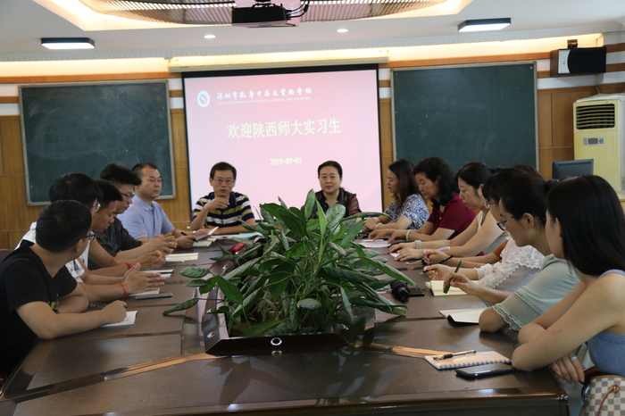 2019年9月1日上午,陜西師范大學(xué)實習(xí)生入校見面會在龍華中英文實驗學(xué)校二樓會議室進行。陜西師大八名實習(xí)生由高偉老師帶隊,學(xué)校金玉善副校長以及校辦、學(xué)部負(fù)責(zé)人參加了見面會,實習(xí)生順利交到各學(xué)部領(lǐng)導(dǎo)手中。