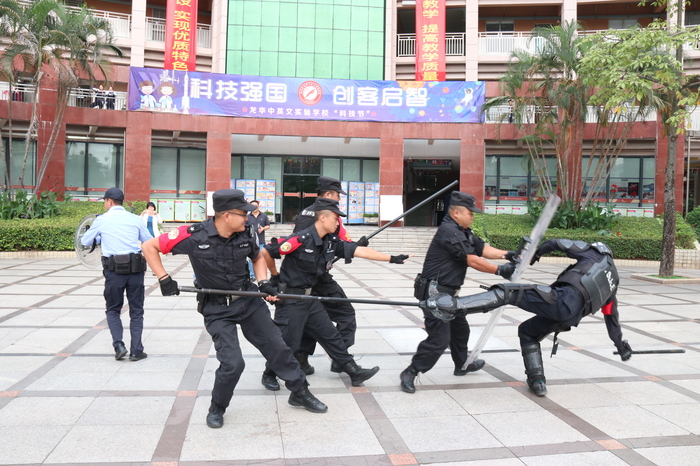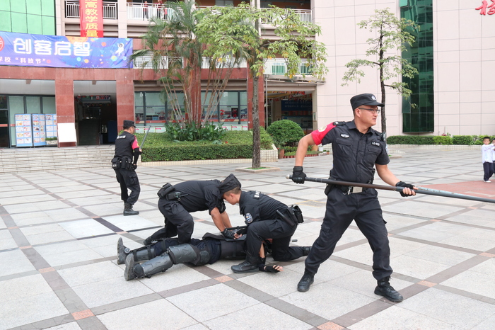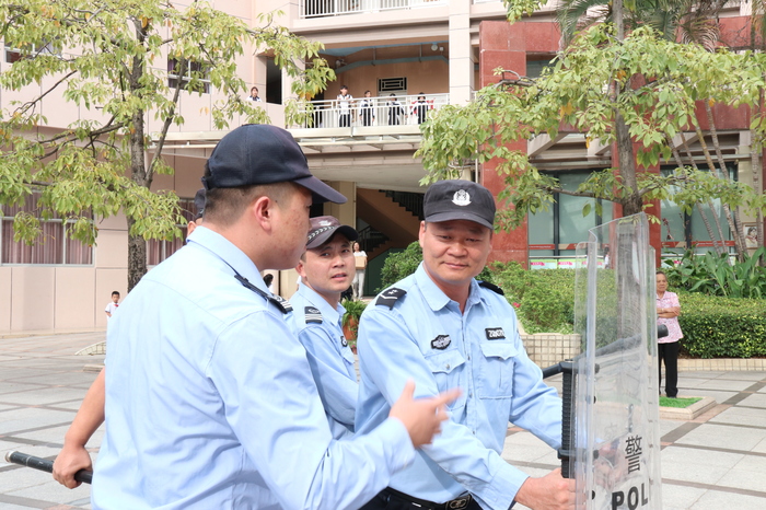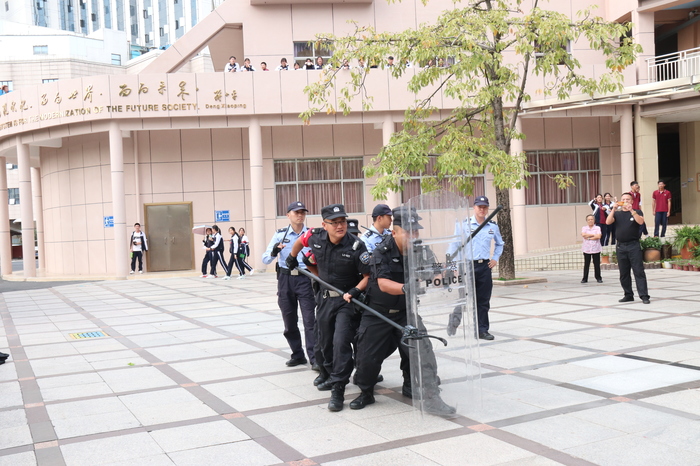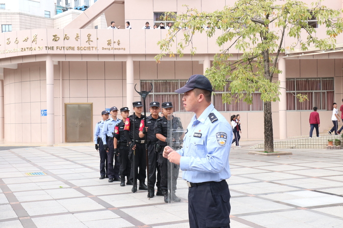 為進一步強化我校師生的反恐防暴意識,提高學(xué)校安保人員的應(yīng)對突發(fā)事件的能力,2019年10月30日下午,深圳市龍華區(qū)龍城派出所防恐沖鋒隊來我校開展了反鞏防暴演練活動,同時對我校安保隊伍進行了專業(yè)技能培訓(xùn)及實戰(zhàn)演習(xí)。