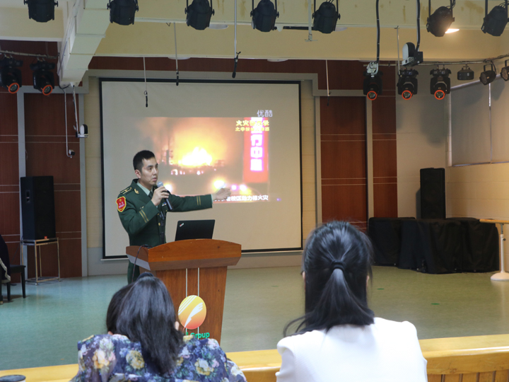 彭隊(duì)長先放幾段發(fā)生火災(zāi)的視頻,接著舉深圳各區(qū)發(fā)生的火災(zāi)具體的案例,用專業(yè)的角度分析,說明遇到火災(zāi)時(shí)如何逃生自救進(jìn)行,提出九鐘策略,教會(huì)老師如何面對火災(zāi),教會(huì)老師學(xué)會(huì)逃生。