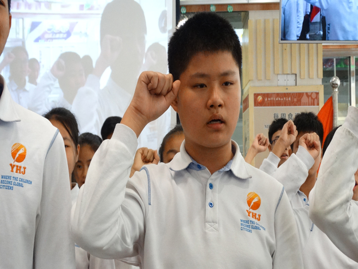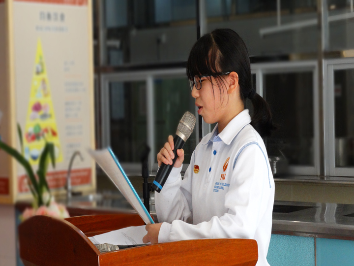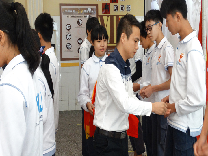 2016年12月15日星期五上午10點,我校初中部在A餐廳舉行了新團員入團宣誓儀式,周文霞副校長、學校團委鐘冬才書記、初中全體師生共300多人參加了這次宣誓儀式。