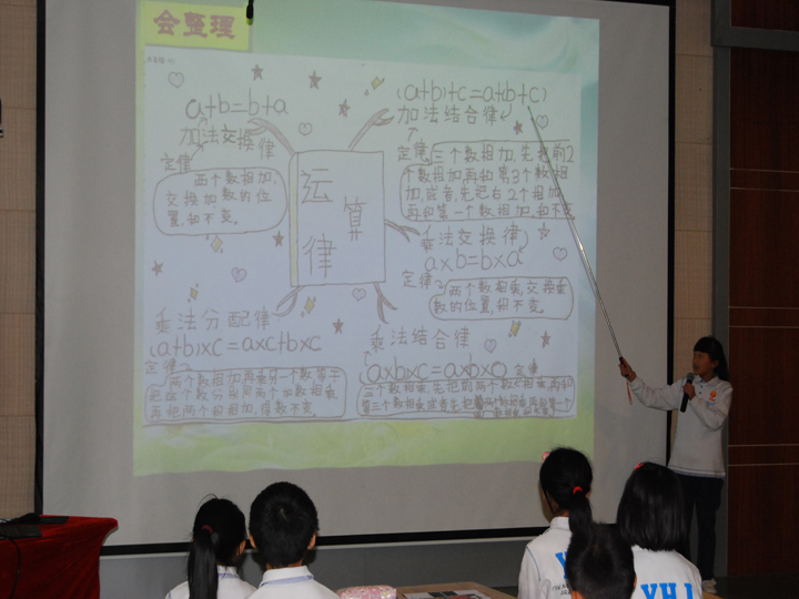 公明中英文學(xué)校的劉芬老師的復(fù)習(xí)內(nèi)容是四年級(jí)運(yùn)算律的、《復(fù)習(xí)與整理一》。劉老師以學(xué)生為主、提前讓學(xué)生把單元知識(shí)點(diǎn)繪制成思維導(dǎo)圖,讓孩子自主整理、梳理知識(shí)、區(qū)別各定律的應(yīng)用、建立知識(shí)網(wǎng)絡(luò)、提高課堂學(xué)習(xí)的高效性;在課堂中劉老師以生為本、小組討論、展示匯報(bào)、師徒結(jié)對的方式進(jìn)行教學(xué),激發(fā)學(xué)生的學(xué)習(xí)興趣;通過一起作業(yè)網(wǎng)的數(shù)據(jù)統(tǒng)計(jì)、收集學(xué)生平時(shí)的錯(cuò)題,查漏補(bǔ)缺,注意復(fù)習(xí)的針對性;攻難點(diǎn)巧運(yùn)用、注意復(fù)習(xí)的有效性。給大家呈現(xiàn)了堂高效的復(fù)習(xí)課。