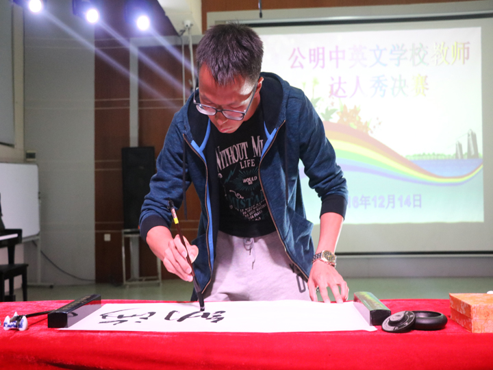 體育老師秀書法,語文老師彈手風琴,還有動感十足的熱歌勁舞、令人捧腹的雙簧小品……,在近日舉行的公明中英文學校教師達人秀上,老師們自編自創(chuàng)的節(jié)目高潮跌起,精彩的表演讓在場的教職工賺足了眼球。