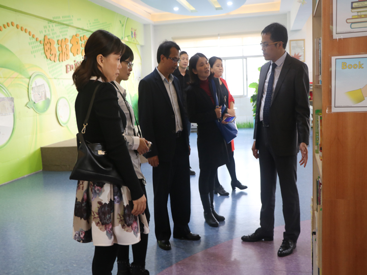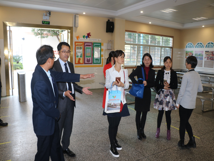張建軍校長一行首先來到了學(xué)校的社會(huì)資源中心,陳志鋒校長介紹了學(xué)校的發(fā)展歷程。接著,大家一起參觀學(xué)校的食堂,陳校長介紹,學(xué)校在培養(yǎng)學(xué)生排隊(duì)就餐的意識(shí)和愛好閱讀的習(xí)慣,開設(shè)烹飪實(shí)踐課讓學(xué)生制作美食,感受勞動(dòng)的樂趣。然后,學(xué)校藝術(shù)中心,參觀了樂器室,舞蹈室,學(xué)校對(duì)藝術(shù)教育的投入與成果讓惠高附小的領(lǐng)導(dǎo)們贊嘆不已。此外,惠高附小的領(lǐng)導(dǎo)們還參觀了學(xué)校的教師資源中心,培訓(xùn)室,學(xué)習(xí)資源中心,教室,表示愿與公明中英文學(xué)校經(jīng)常交流、共同提高。(圖、文/林鉅豪)