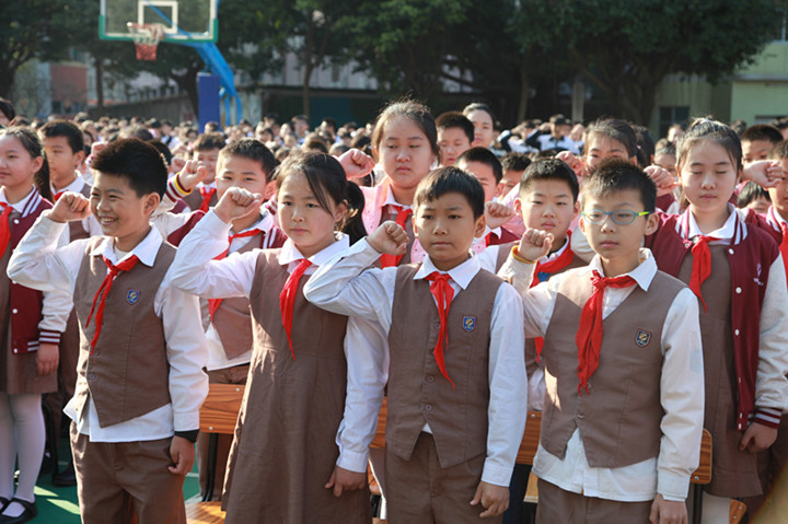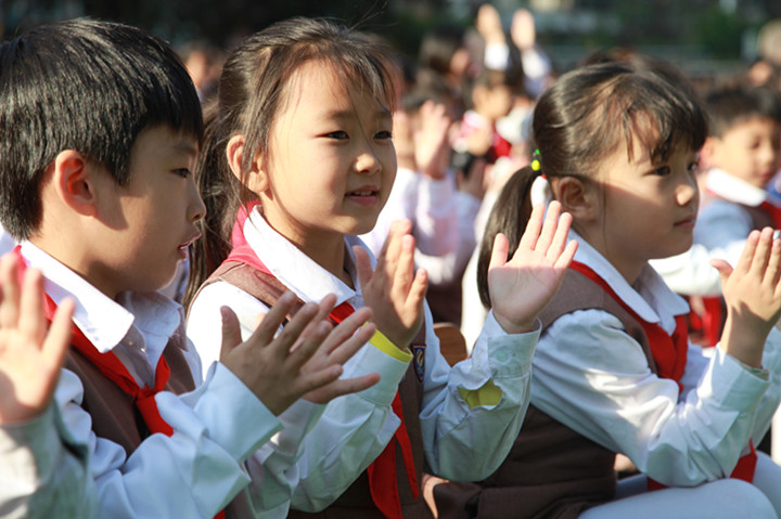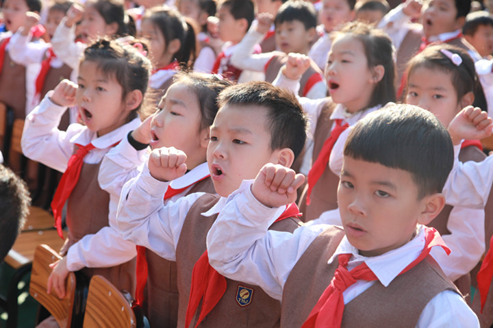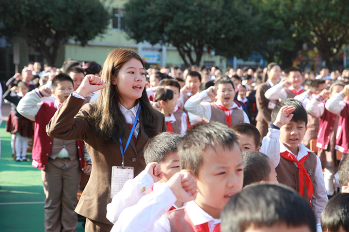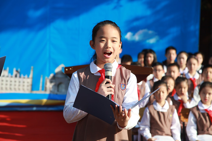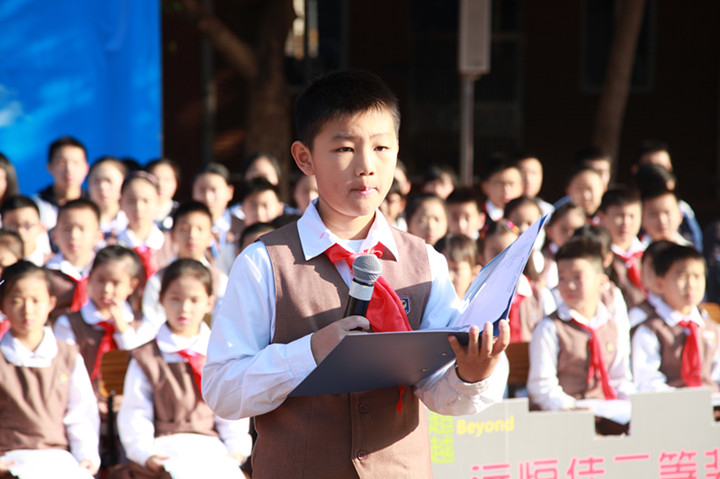 在升旗儀式上,金玉善副校長為大家宣讀了《新學期公約》,為同學們的學習、行為、禮儀指明了方向;師生代表表演的詩朗誦《緊握世界的手,編織美好的夢》,學生表演唱《青春修煉手冊》等,以聲情并茂、切合實際、輕松勵志深受師生的喜愛;師生“少年智則國智,少年強則國強,我們會,好好學習、天天向上,緊握世界的手,編織美好的夢”的團隊勵志呼號更是把活動推向了高潮。會場氣氛熱烈、士氣高昂!