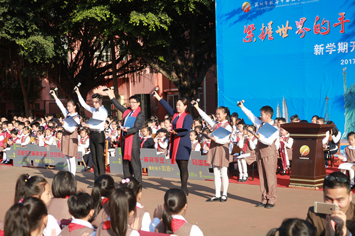 開學典禮創(chuàng)新招,優(yōu)秀師生坐主臺 ——深圳市龍華中英文實驗學校舉行開學典禮
