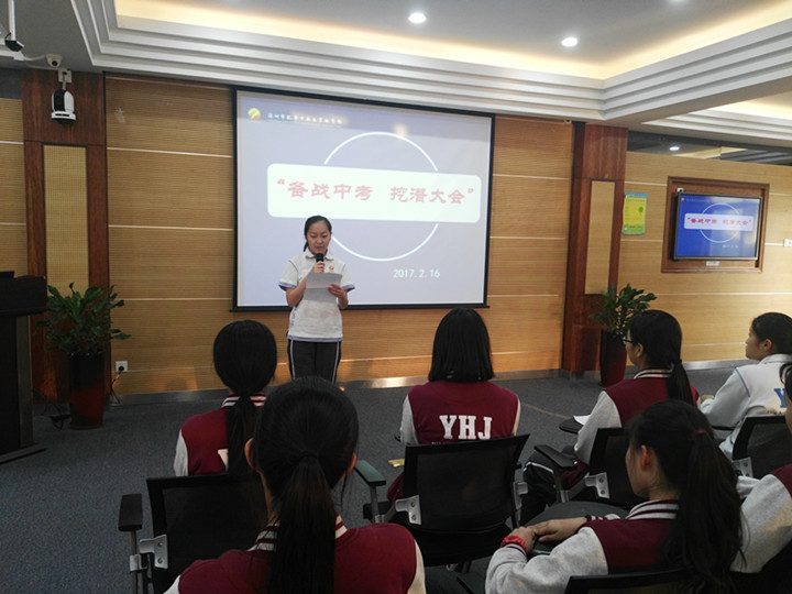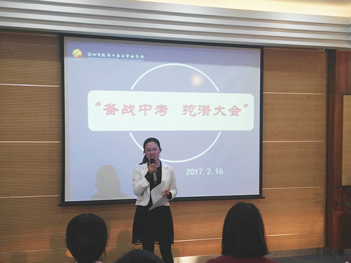 陽(yáng)春二月,萬(wàn)物萌發(fā),清風(fēng)拂面,木棉依依,在這孕育希望的季節(jié)里,我們聽到?jīng)Q戰(zhàn)的號(hào)角已經(jīng)吹響!為了增強(qiáng)初三學(xué)子迎戰(zhàn)中考的信心,以良好的精神狀態(tài)備戰(zhàn)中考,形成良好的學(xué)習(xí)氛圍,2017年02月16日下午在特級(jí)教師、初中部張翠玲主任,初中部德育領(lǐng)導(dǎo)李劍鋒同志的組織下,初三全體師生在三樓培訓(xùn)中心開展了以“備戰(zhàn)中考,挖掘潛力”為主題的中考備考活動(dòng)。