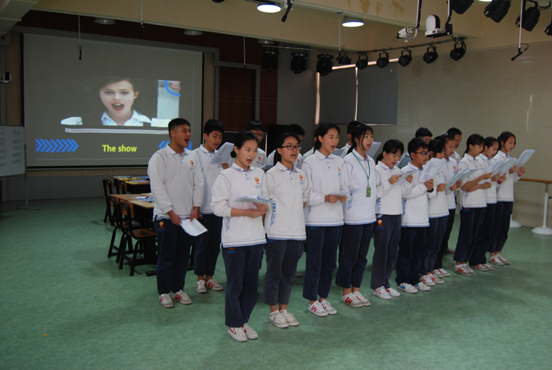 首先,公明中英文學(xué)校國(guó)騰老師主講一堂八年級(jí)小組合作研討課。課前由7,8年級(jí)部分同學(xué)展示了英語(yǔ)歌曲《the show》,孩子們自信的演唱、地道的發(fā)音、優(yōu)美的語(yǔ)調(diào)和歡快的旋律博得老師們陣陣掌聲。