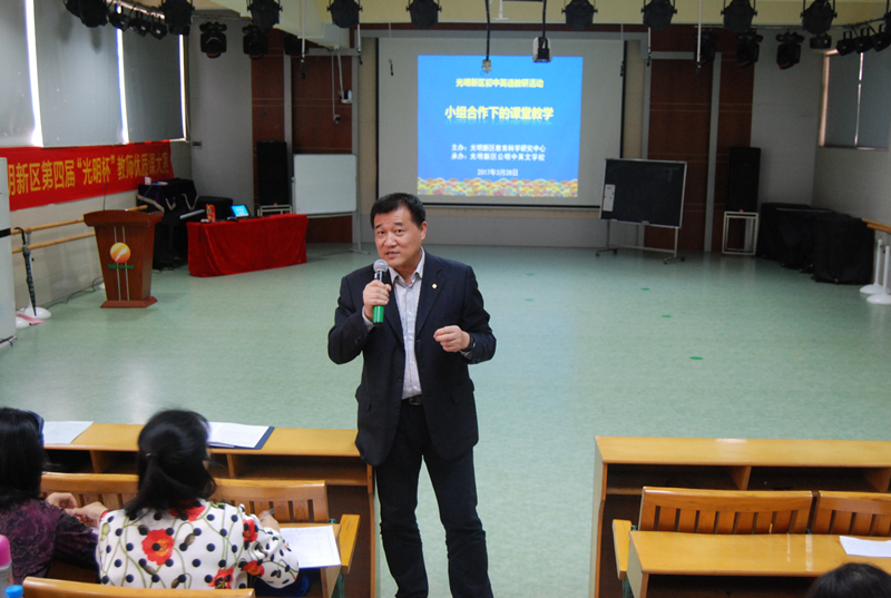為了進(jìn)一步落實(shí)英語(yǔ)課堂教學(xué)改革,提高新區(qū)實(shí)踐英語(yǔ)課堂效率,落實(shí)有效教學(xué),3月28日下午,光明新區(qū)教育科學(xué)研究中心在公明中英文學(xué)校舉行初中英語(yǔ)教研活動(dòng)。本次活動(dòng)主題為“小組合作下的課堂教學(xué)”,活動(dòng)內(nèi)容包括公明中英文學(xué)校國(guó)騰老師研討課、公明中英文學(xué)校開(kāi)展“小組合作學(xué)習(xí)”經(jīng)驗(yàn)介紹和教研員張書(shū)生老師點(diǎn)評(píng)培訓(xùn)等三個(gè)部分。本次教研活動(dòng)由新區(qū)英語(yǔ)教研員張書(shū)生老師主持,全區(qū)初中英語(yǔ)老師參加。