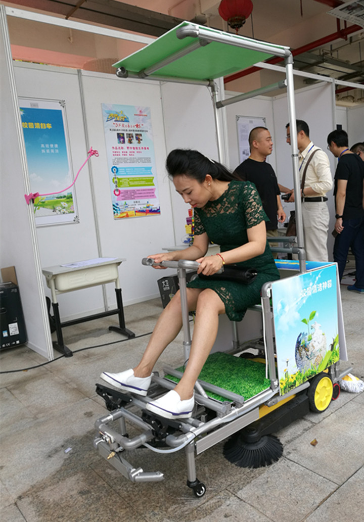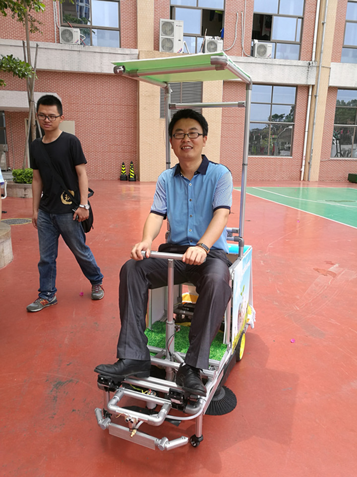 因?yàn)辇埲A中英文實(shí)驗(yàn)學(xué)校是深圳大學(xué)授牌的《FEG智能無人車》創(chuàng)客實(shí)踐基地,作品制作過程中,運(yùn)用的工程結(jié)構(gòu)、3D設(shè)計、Arduino編程、激光切割等技術(shù)得到了深圳大學(xué)的相關(guān)老師與技術(shù)指導(dǎo),該車可以支持有人駕駛及手機(jī)遠(yuǎn)程無人控制等?!缎@清掃車》可以實(shí)現(xiàn)校園落葉垃圾清掃、室內(nèi)球場的托地清潔、足球場草坪修剪、太陽能充電等功能。是一項節(jié)能、環(huán)保、多功能的創(chuàng)客作品。