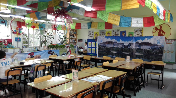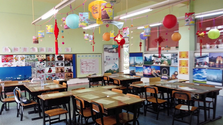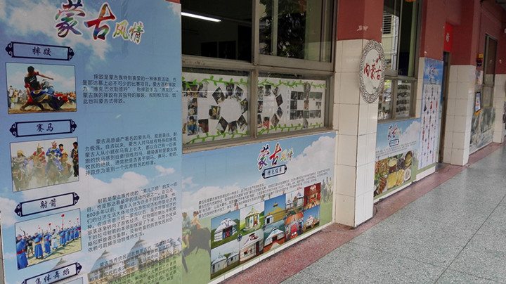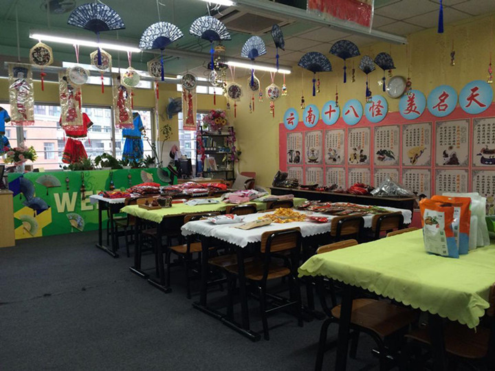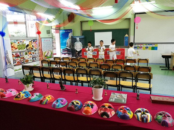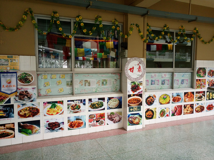 走進(jìn)國際部,到處閃耀著中華傳統(tǒng)文化的光芒,凸顯出國際部的特色教育,學(xué)生耳聞目睹的都是各省優(yōu)秀文化載體:走進(jìn)一樓,最搶眼的是富有節(jié)日氣息的裝飾門,巨幅對聯(lián)寫著“品鑒中華美食蘊(yùn)養(yǎng)民族大情懷,傳承千古文明拓展學(xué)子寬視野?!弊咴谕ㄍ鶉H部的大道上,映入你眼簾的是一塊塊圖文并茂的國際班各班飲食文化和風(fēng)土人情展版,彌漫著書香翰墨,散發(fā)著文化節(jié)的獨(dú)特魅力,濃縮了各位正副班主任的智慧;走廊、教室上空的彩旗、彩帶、彩蝶迎風(fēng)飄揚(yáng),訴說著美好的辦學(xué)愿景;每個(gè)教室不同的主題和個(gè)性營造了濃濃的中華文化氛圍。
